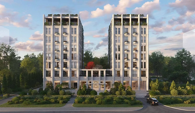 Архитектурный проект от бюро ADM «Энигмия», известный своей оригинальной концепцией, включает два стеклянных здания высотой 16 и 19 этажей, которые соединены необычным мостом-садом. Фасады будут выполнены из витражного стекла и алюминиевых анодированных панелей, что подчеркнёт современный стиль и высокие технологии объекта.